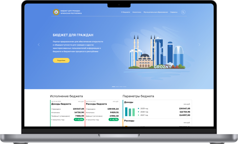 Портал «Бюджет для граждан Чеченской Республики» предназначен для обеспечения открытости и общедоступности для граждан и других заинтересованных пользователей информации о бюджете и бюджетном процессе в республике.